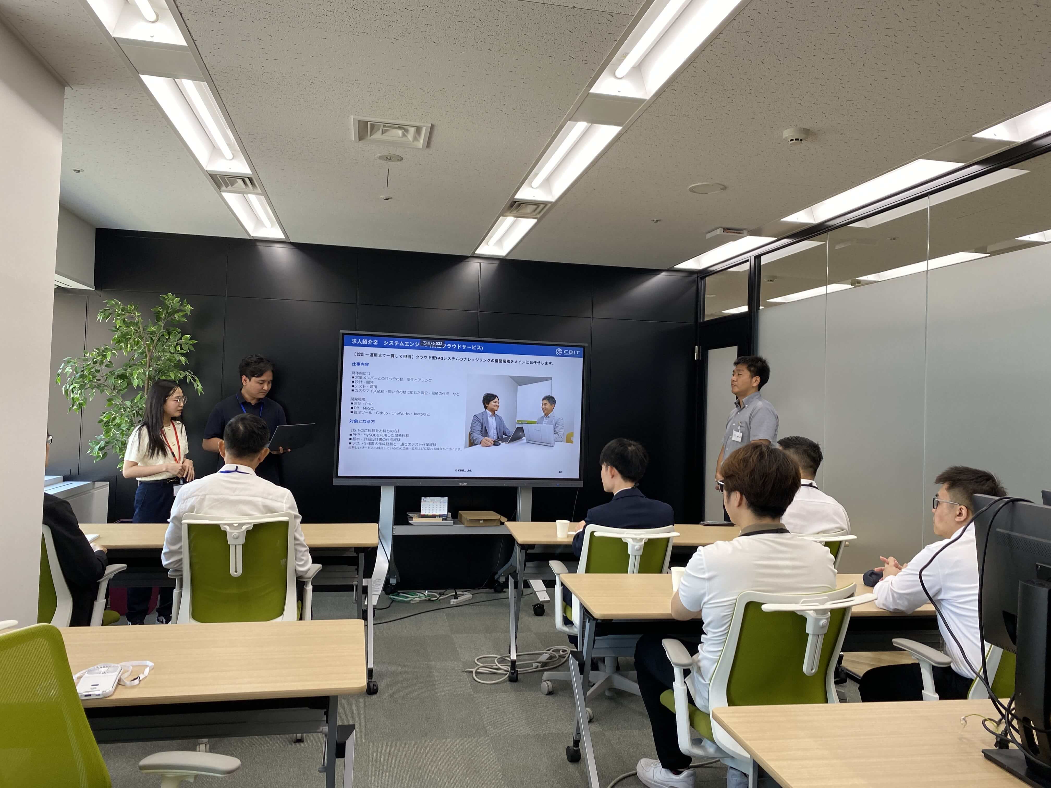 会社紹介を、参加者の皆さんが 真剣に聞き入っている様子